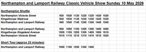 We will be running a bus from Northampton, via Kingsthorpe to the event, and will also do a few local tours, timetables shown here. We will also have a stand.
